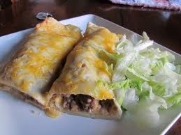 Brown ground beef and drain.  Add chili powder, garlic, salt and onion.  Combine white sauce, sage, oregano, cumin and chiles.  Simmer over very low heat until warm (you can heat in the microwave as well).  Reserve 1 cup sauce and 1 cup grated cheese.  Mix remaining sauce and cheese with meat, lettuce and tomatoes.  Place this mixture in tortillas, roll and place seam side down in a flat, greased baking dish.  Top with reserved sauce and cheese.  Cover with foil.  bake at 350 degrees for 15 minutes.  You can uncover and broil for a few minutes if you would like to slightly brown the cheese.  Serve with salsa, guacamole or any other toppings you would like to add.